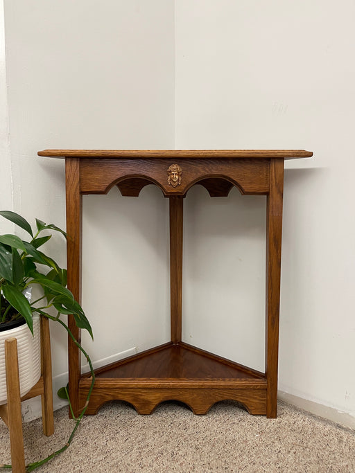 Vintage Gothic Revival Corner Table with Carved Classical Face Medallion