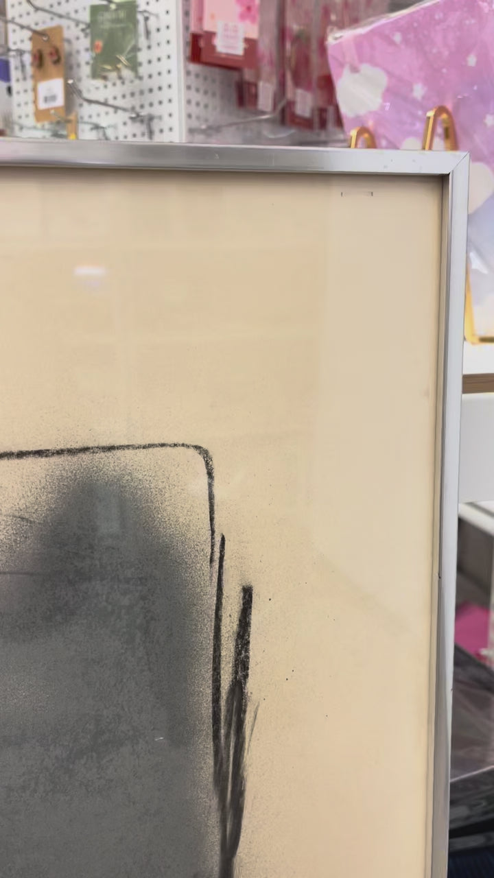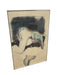 Presented under glass in a minimalist silver-tone metal frame. The reverse retains a framer's label. Paper shows mild age toning consistent with vintage works on paper.This piece combines figurative abstraction with gestural mark-making, reflecting mid- to late-20th century drawing and mixed media techniques.