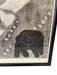 The piece is signed and dated B. Dodson 88 in the lower right corner. Handwritten on the back of the frame is the artist's title and medium: Indian III - Elephant, Collagraph. Presented in its original black frame with paper backing and hanging wire.