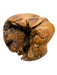 Handcrafted from a single piece of what is most likely solid teak root, this organic form accent showcases the natural contours, knots, and grain variations of the wood. The surface is sanded smooth to highlight the rich golden-brown tones, while the sides retain a combination of polished and raw textures, revealing the tree's natural character. The mostly flat top allows it to function as a small side table, plant stand, or display shelf, though it may have originally been intended as a purely decorative sculptural element. Its irregular shape, visible growth rings, and preserved crevices make it a unique, one-of-a-kind piece that brings warmth and natural artistry to any interior.
