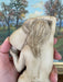 The carving shows signs of age, with some natural surface wear and minor chips, particularly along the base and edges, consistent with vintage handling. The warm ivory-toned stone, with areas of darker patination in the recessed details, enhances the sense of depth and realism.