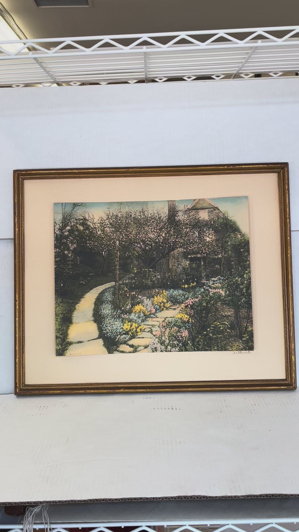 The frame shows light wear and patina consistent with age, enhancing its authentic antique appeal.A fine example of Nutting's collectible artistry, ideal for collectors of early American photography or those seeking decorative cottage and garden imagery.