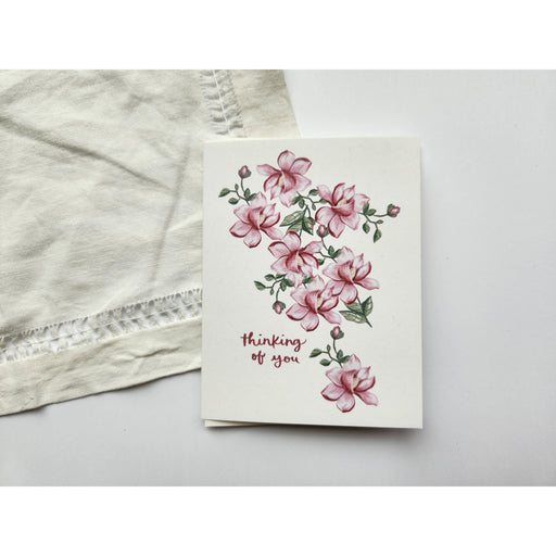 Low stockDescription : pretty magnolia blooms on a white background and the words "thinking of you" Item Number : P245 Ca...