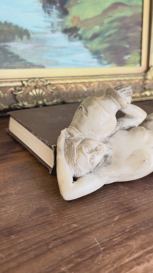 Vintage Hand-Carved Possibly Alabaster Sculpture of Reclining Nude Woman with Water Vessel