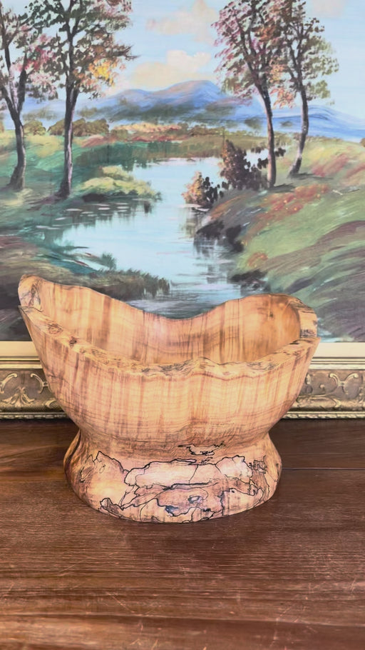 Hand-Turned Spalted Sugar Maple Pedestal Bowl, Wisconsin Artisan, 2018