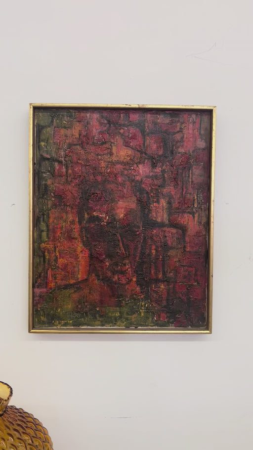 Vintage Mid-Century Abstract Expressionist Portrait Painting on Canvas