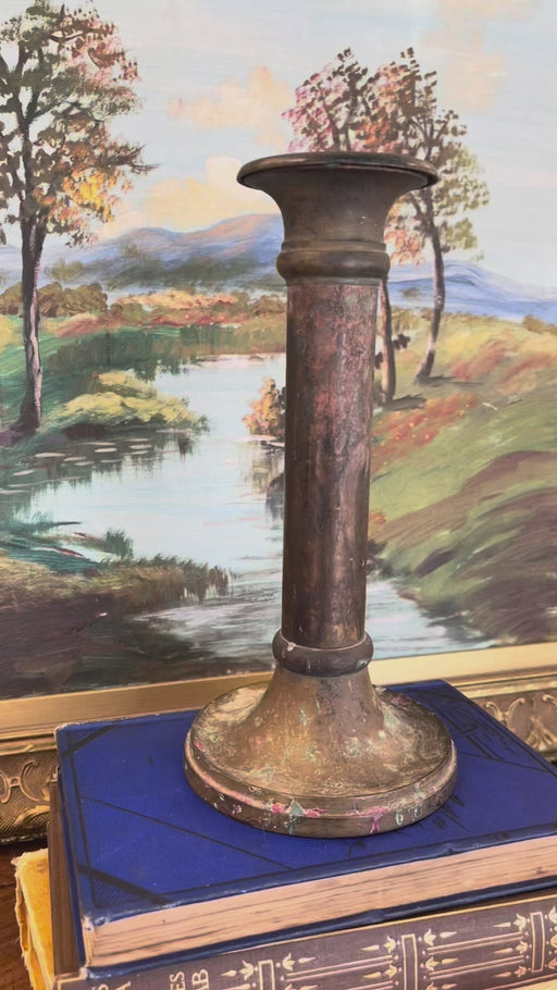 Low stockLikely Early 20th-century solid brass toned candlestick holder featuring a flared lip and wide, rounded base.The surface has developed a rich, time...