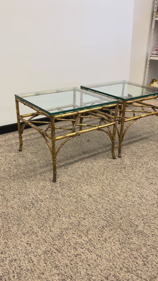Vintage Mid Century Modern Style Faux Bamboo Gold Color Side End Table Set Attributed to Phyllis Morris