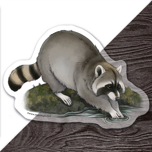 In stockDescription : 3.5” clear vinyl decal of a raccoon washing their paws. Made from waterproof vinyl, perfect for water bottles, cars, laptops...