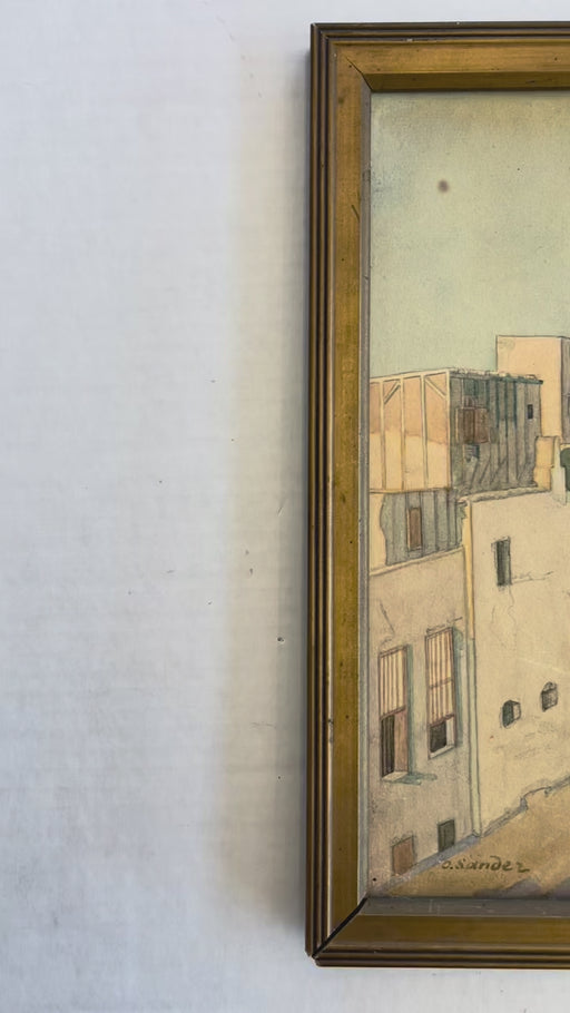 Framed 1922 Watercolor Cityscape of Cairo by O. Sandez - Orientalist Architectural Painting