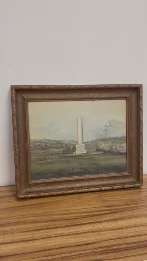 Vintage Framed Original Painting of Norwegian Country and Monument