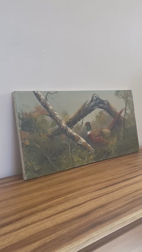 Vintage Original Signed Pheasant Painting on Canvas. Circa 1971