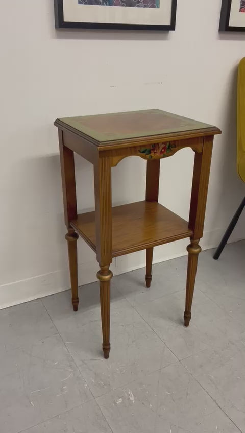 Vintage French Regency Style Side Table With Hand Painted Motif.