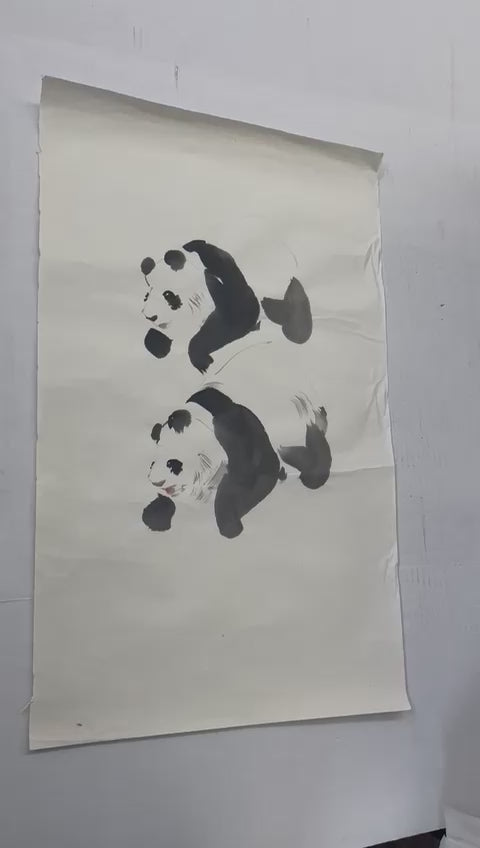 Vintage Original Watercolor Painting of Panda Bear Study.