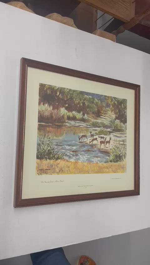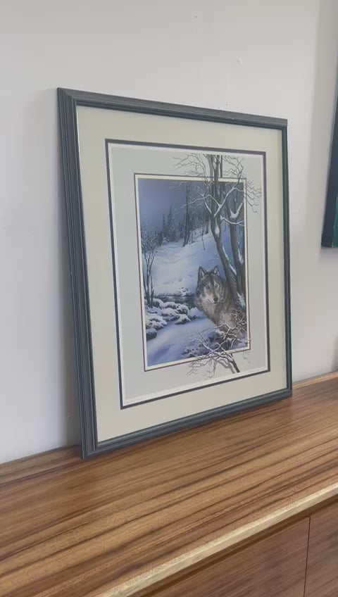 Vintage Original Framed and Signed Art Print Titled “ Wolf Lone Watcher “