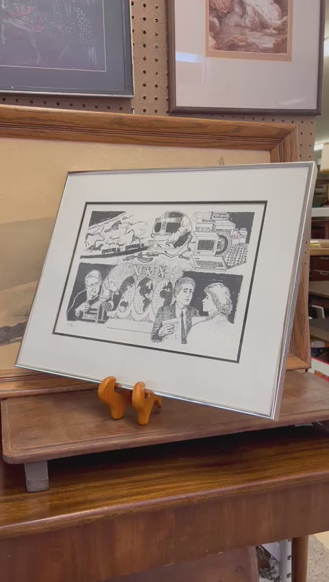 Low stockThe Subject of the Work is Mid Century Americana, Featuring Newscasters andEarly Computers. Silver Toned Frame. Vintage Condition Consistent with A...