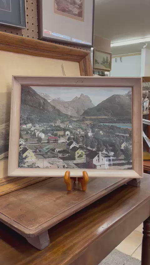 Vintage Framed Original Tinted Photograph of Mountain Side Cityscape