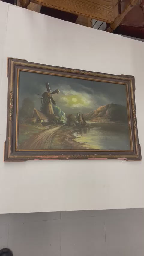 Vintage Original Landscape Windmill Artwork Within Victorian Style Frame
