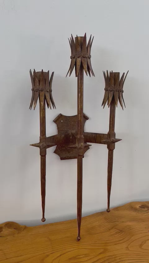 Original price $1,295.00 - Original price $1,295.00Original price$1,295.00$1,295.00 - $1,295.00Current price $1,295.00| /Vintage Brutalist Style Gilt Wall Sconce Candle HolderLow stockThree Pronged Wall Sconce . Possibly Spanish Based on Research. Spiked Poles That’s are pointed at the bottom. Back Plate has Holes to Place Screws... View full detailsOriginal price $1,295.00 - Original price $1,295.00Original price$1,295.00$1,295.00 - $1,295.00Current price $1,295.00| /