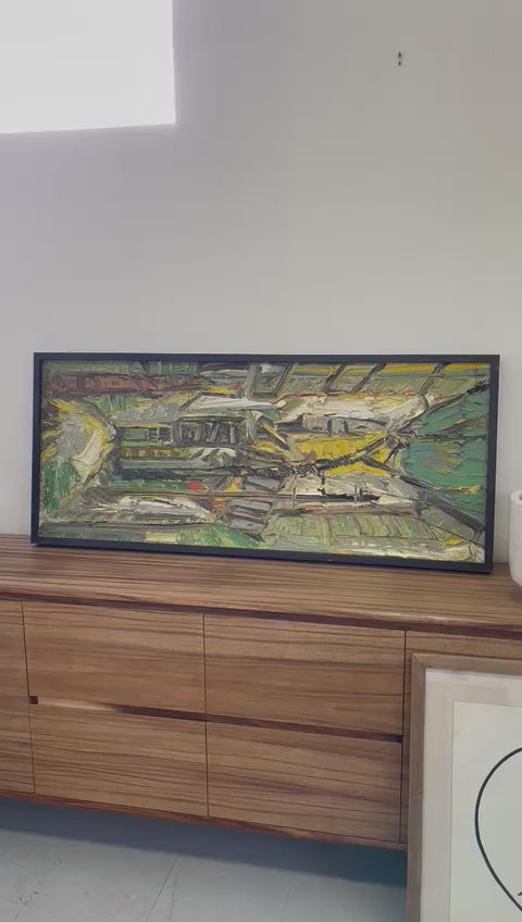 Original price $895.00 - Original price $895.00Original price$895.00$895.00 - $895.00Current price $895.00| /Vintage Mid Century Modern Style Framed Painting on CanvasLow stockFramed Artwork within a Black Frame. Signed M. Bile as Pictured. Textured Paint Creates a 3D Effect. Green and Yellow Color Palette.Abstract City L... View full detailsOriginal price $895.00 - Original price $895.00Original price$895.00$895.00 - $895.00Current price $895.00| /