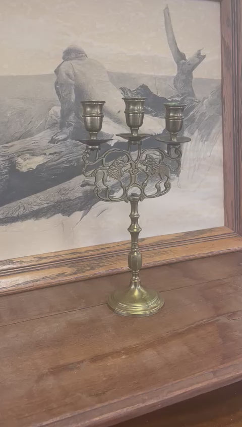 Original price $69.00 - Original price $69.00Original price$69.00$69.00 - $69.00Current price $69.00| /Vintage Gold Toned Candelabra With Lion MotifLow stockThis Candelabra Features a Motif of Two Lions. May need to be Cleaned as Pictured. Vintage Condition Consistent with Age.Dimensions. 7 W ; 3 D ; 12 H Original price $69.00 - Original price $69.00Original price$69.00$69.00 - $69.00Current price $69.00| /