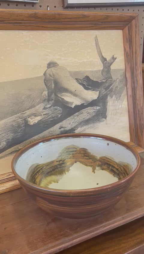 Original price $179.00 - Original price $179.00Original price$179.00$179.00 - $179.00Current price $179.00| /Vintage Large Glazed Ceramic BowlLow stockSalad Bowl or Beautiful Decor Piece.Signed M.G on the Bottom as Pictured.White Interior with Abstract Brown Detailing.Dimensions. 13 Diameter; 6 H Original price $179.00 - Original price $179.00Original price$179.00$179.00 - $179.00Current price $179.00| /