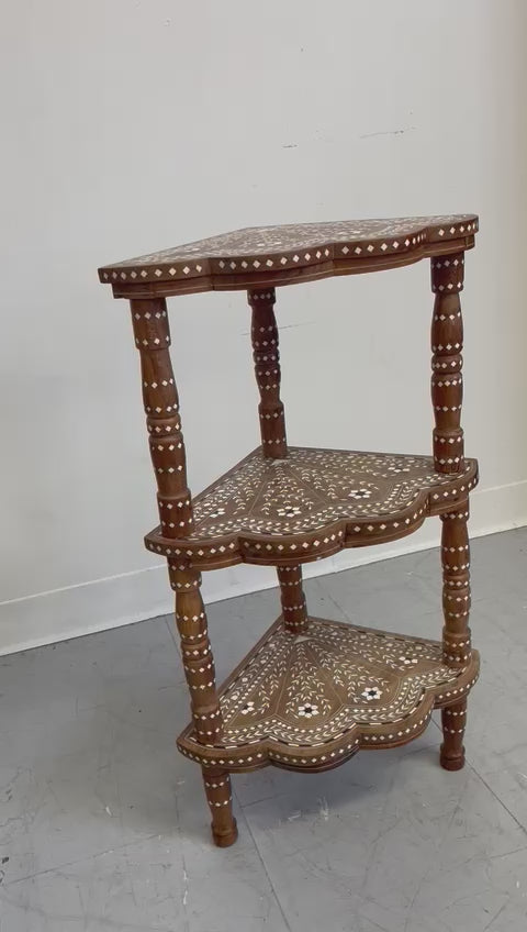 Original price $1,595.00 - Original price $1,595.00Original price$1,595.00$1,595.00 - $1,595.00Current price $1,595.00| /Vintage Three Tier Intricate Inlay Corner Shelving UnitLow stockThis Shelving unit Features a Bright White Floral Motif. Possibly She’ll Inlay , Possibly From India. Makers Mark and Serial Number are Pictured.Di... View full detailsOriginal price $1,595.00 - Original price $1,595.00Original price$1,595.00$1,595.00 - $1,595.00Current price $1,595.00| /