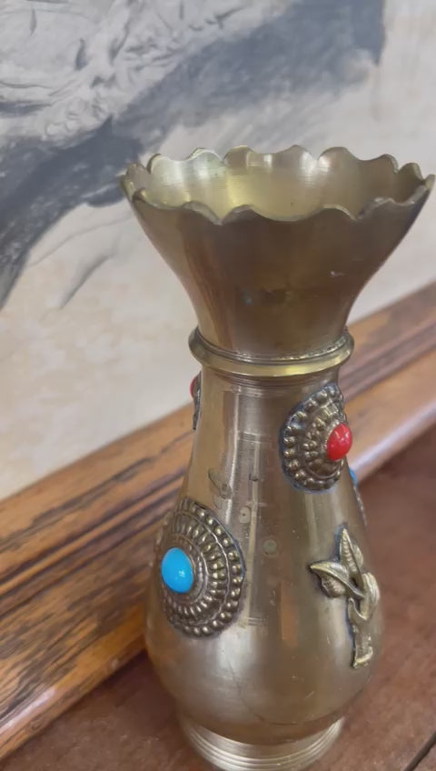 Original price $79.00 - Original price $79.00Original price$79.00$79.00 - $79.00Current price $79.00| /Antique Decorative Brass Bejeweled Vase Red and Blue AccentsLow stockAntique Decorative Brass Bejeweled Vase Red and Blue Accents Decor Art decorDimensions. 3 W ; 3 D ; 6 H Original price $79.00 - Original price $79.00Original price$79.00$79.00 - $79.00Current price $79.00| /