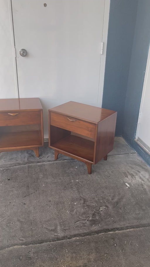 Vintage Mid Century Modern Walnut End Table Set Dovetail Drawers by Lane