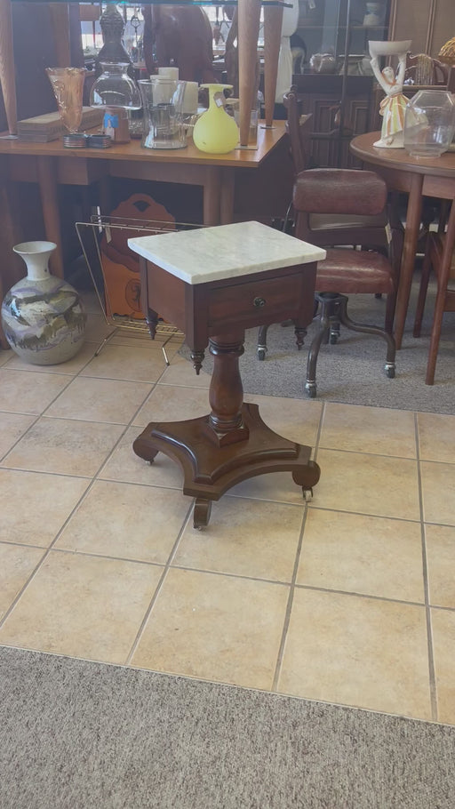 Low stockAntique End Table Stand with Dovetail Drawers Stone Top Dimensions. 14 1/2 W ; 12 D ; 27 H
