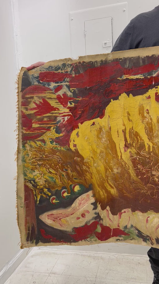 Low stockVintage Abstract Painting On Canvas. This Work is in Abstract Style with a Hidden Alien Image. There is a Wear as Pictured. Dimensions. 59 W ; 32 1...