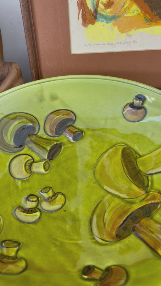Low stockVintage Plate with Mushroom Design with Interesting Glaze Dimensions. Diameter 14 ; 2 1/2 H
