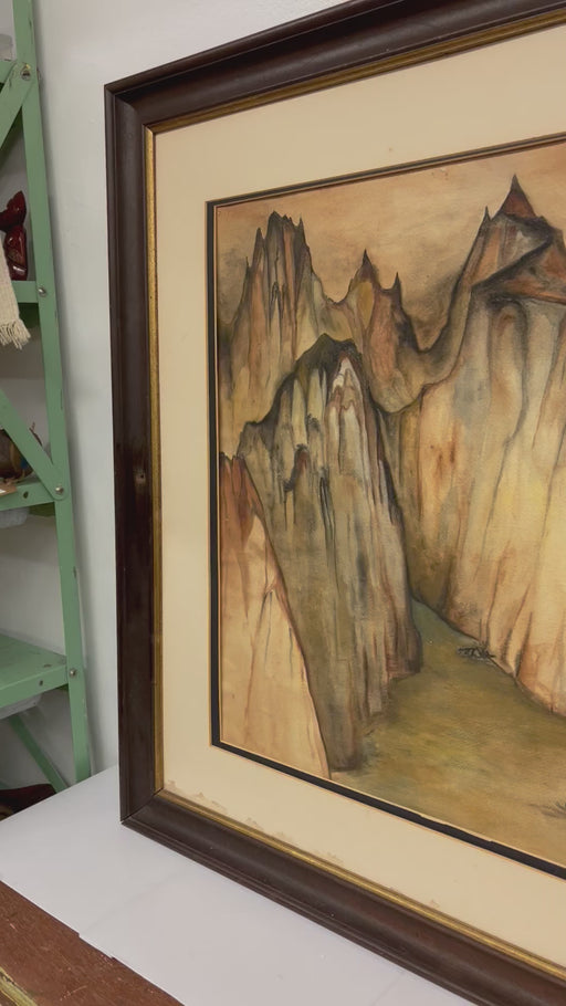 Low stockWatercolor Painting depicts boats in canyon and is signed lower right Nicki Looney. Painting Measures 21 “ by 29 “ Visible and is Matted and Mounte...
