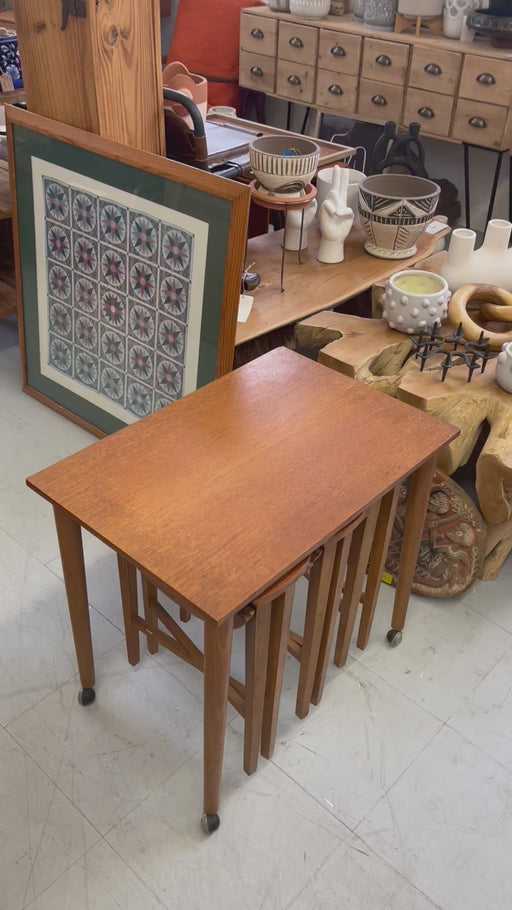 Vintage Mid Century Modern Nesting Tables on Casters UK Import