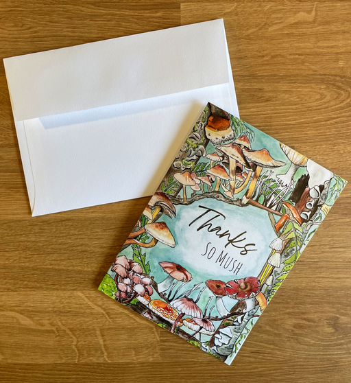 "Thanks So Mush" Watercolor Mushroom Punny Botanical Card