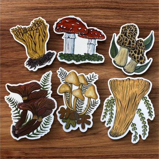 Mushroom Sticker Pack: Six Hand-Painted Die Cut Fungi Illustrations