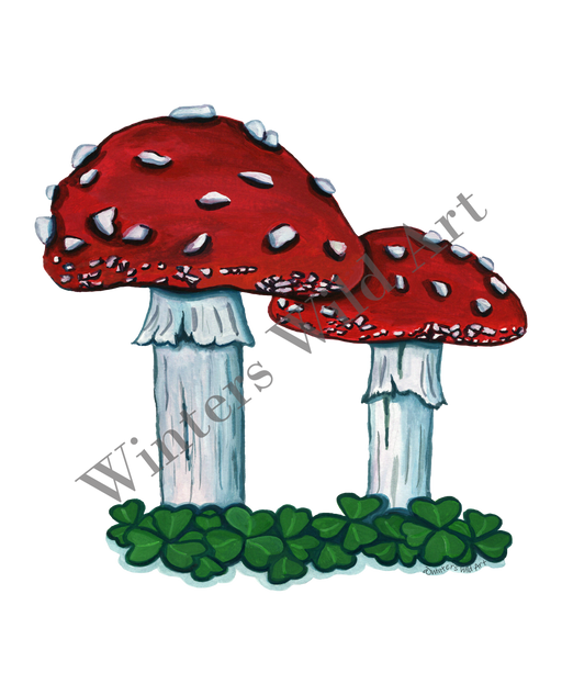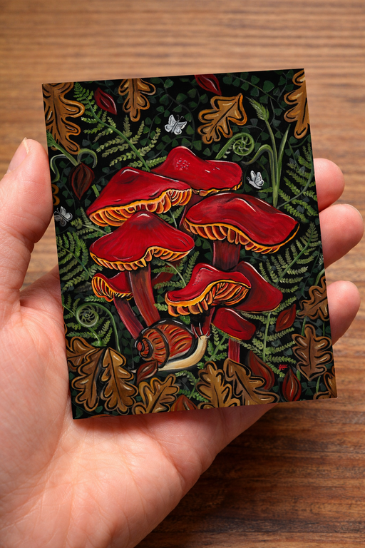 Scarlet Mushrooms Botanical Illustration Mini Print 4x5