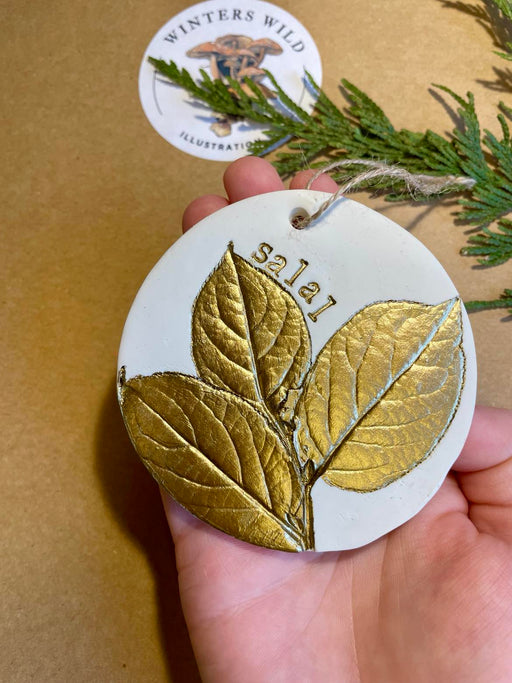 Handmade Clay Botanical Ornament Made with Real Pressed Plants, Salal
