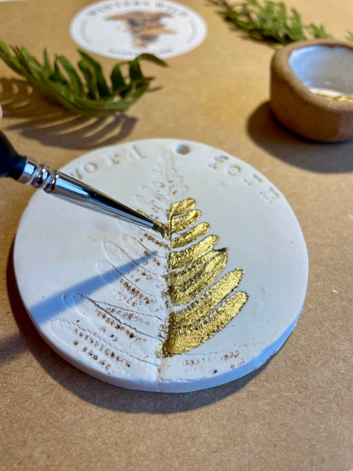 Handmade Clay Botanical Ornament Made with Real Pressed Plants, Sword Fern
