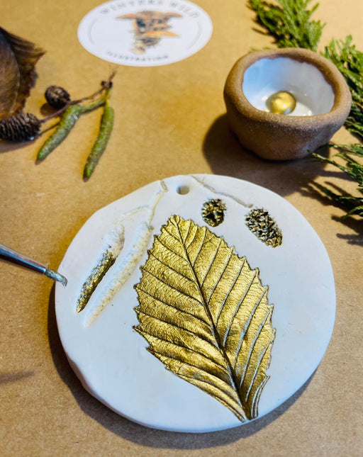 Handmade Clay Botanical Ornament Made with Real Pressed Plants, Red Alder