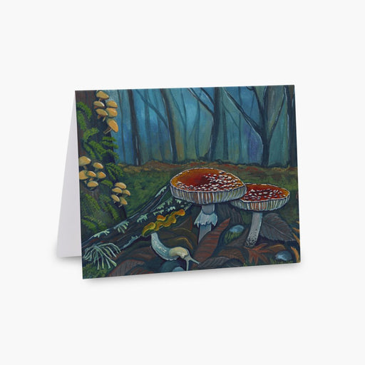 Low stockDescription : Step into a quiet, magical woodland with this mushroom greeting card. Featuring vibrant red-capped toadstools nestled among ...