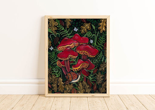 Scarlet Red Mushrooms Botanical Illustration Art Print 11x14