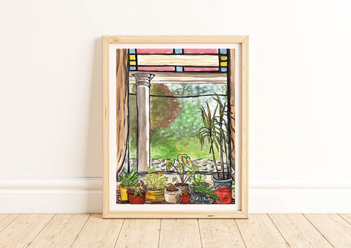 Low stockDescription : This art print was inspired by my mother's stained glass window in her 100-year-old home, with all her lovely plants! Thi...