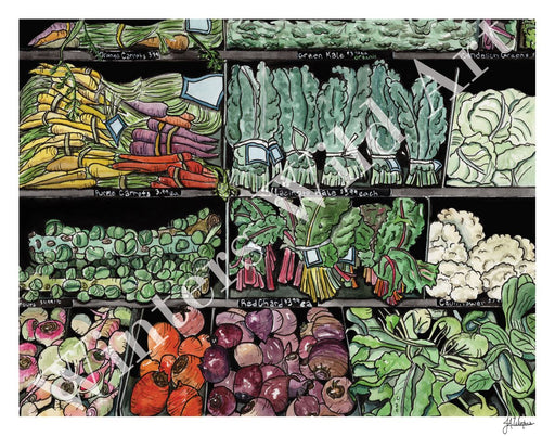 Abundance Vegetable Watercolor Illustration Art Print 14x11
