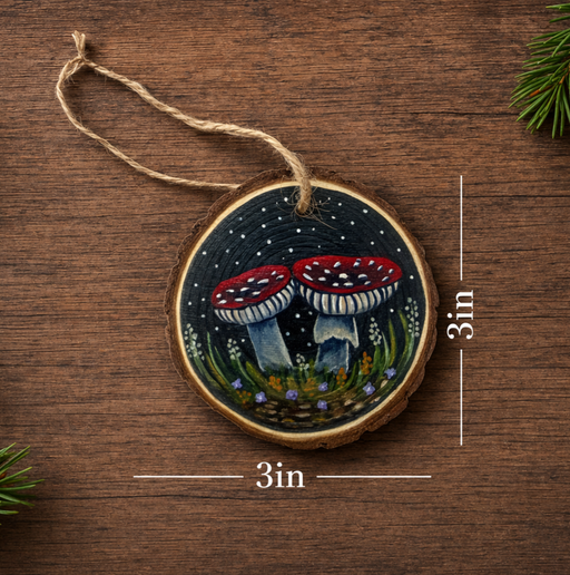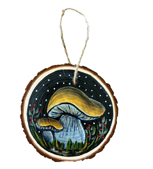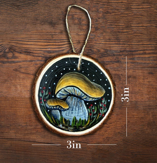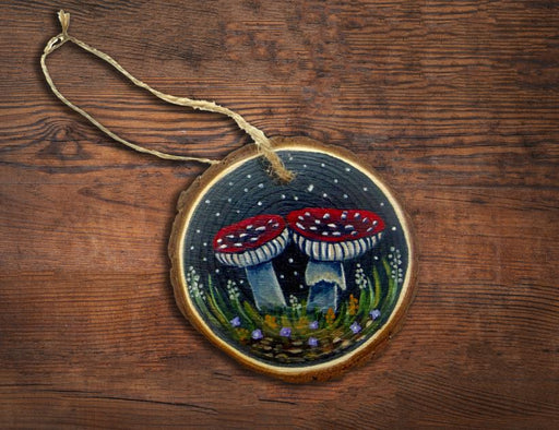 Whimsical Hand-Painted Mushroom Wood Slice Ornament