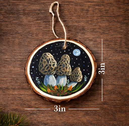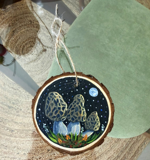 Magical Morel Mushroom Hand-Painted Wood Slice Ornament