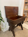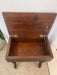 This likely antique Eastlake-style bench offers a charming combination of decorative craftsmanship and practical storage. Constructed from what is likely walnut or stained oak-the bench features a hinged lift-top seat that opens to reveal a hidden interior compartment, possibly originally intended for sewing supplies but ideal for modern storage needs.