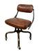 Vintage Industrial Office Chair with Brown Upholstery and Metal Base on Casters