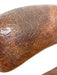 A vintage industrial office chair featuring its original brown textured upholstery and a sturdy metal frame.The seat and backrest are generously padded for comfort, with the backrest supported by curved metal brackets that allow for slight flexibility. The chair rests on a heavy four-legged metal base with casters for mobility.