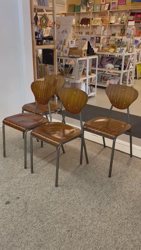 Original price $595.00 - Original price $595.00Original price$595.00$595.00 - $595.00Current price $595.00| /Vintage Danish Modern Chairs With Metal Frame. Set of 4.Low stockSet of four metal frame chairs with curved wood seats and back. No Makers mark. Vintage condition consistent with age as Pictured. Dimensions. 16 W... View full detailsOriginal price $595.00 - Original price $595.00Original price$595.00$595.00 - $595.00Current price $595.00| /